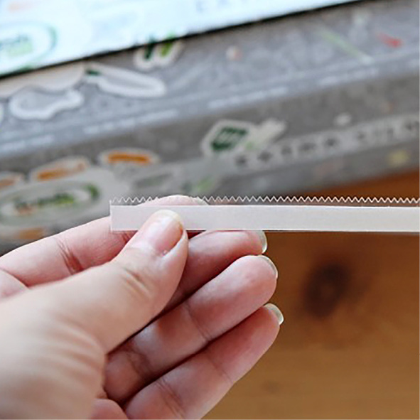 Kvalitní potravinová fólie s funkční řezačkou, která usnadňuje balení a uchovávání potravin, ideální pro každodenní použití.