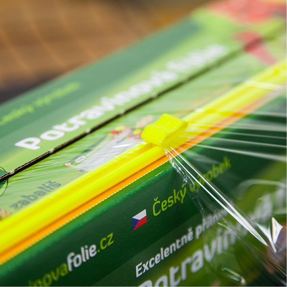 Širší verze fólie s praktickou řezačkou pro větší balení potravin, grilování nebo pečení.