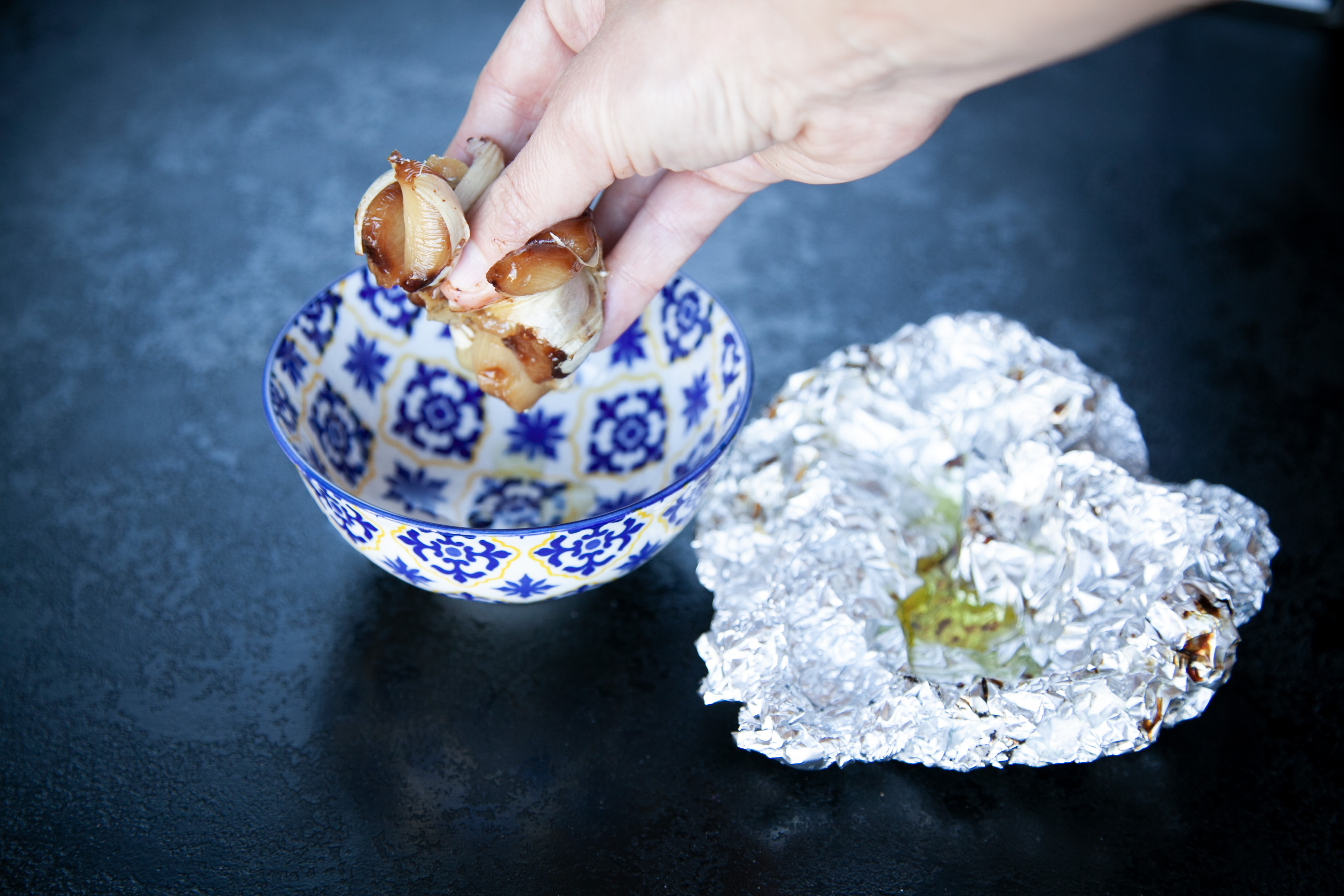 Pečený česnekrozmačkejte vidličkou a použijte do zálivek na saláty, na rozpečenou bagetku nebo jen tak.
