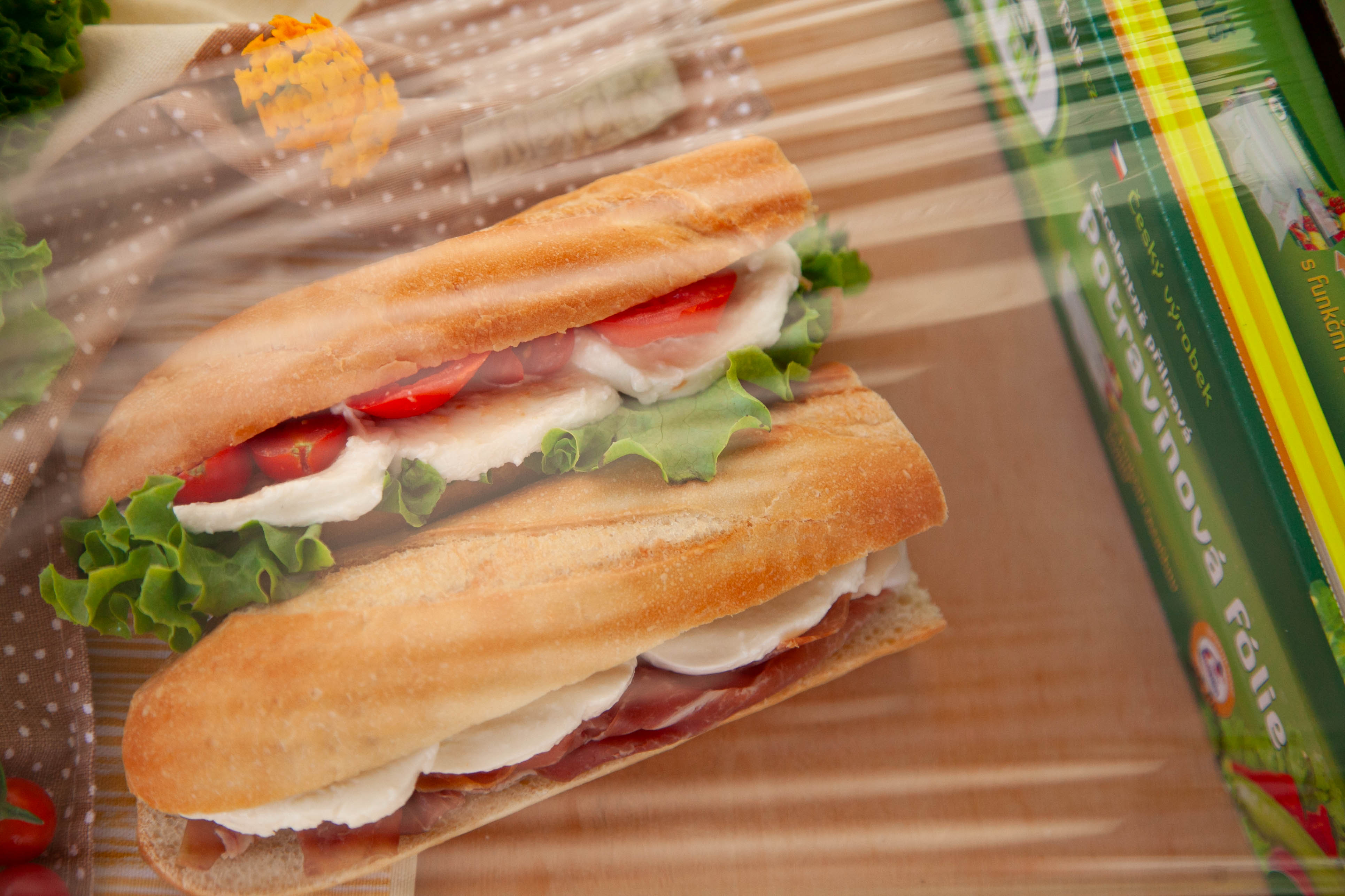 Obložené bagety a rohlíky jsou tradiční záležitost. Chystáme si je na svačinu do práce, dětem do školy nebo taky na výlety. Asi nikdo z nás nemá rád vyschlé pečivo. Proto když připravujete bagety nebo rohlíky, nezapoměňte je zabalit do naší fólie. Díky svým jedinečným vlastnostem dokonale přilne na pečivo a to zůstane dlouho čerstvé. A pokud bagetu hned nesníte? Vůbec nevadí, fólie zůstává pružná a můžete s ní pečivo opětovně zabalit.