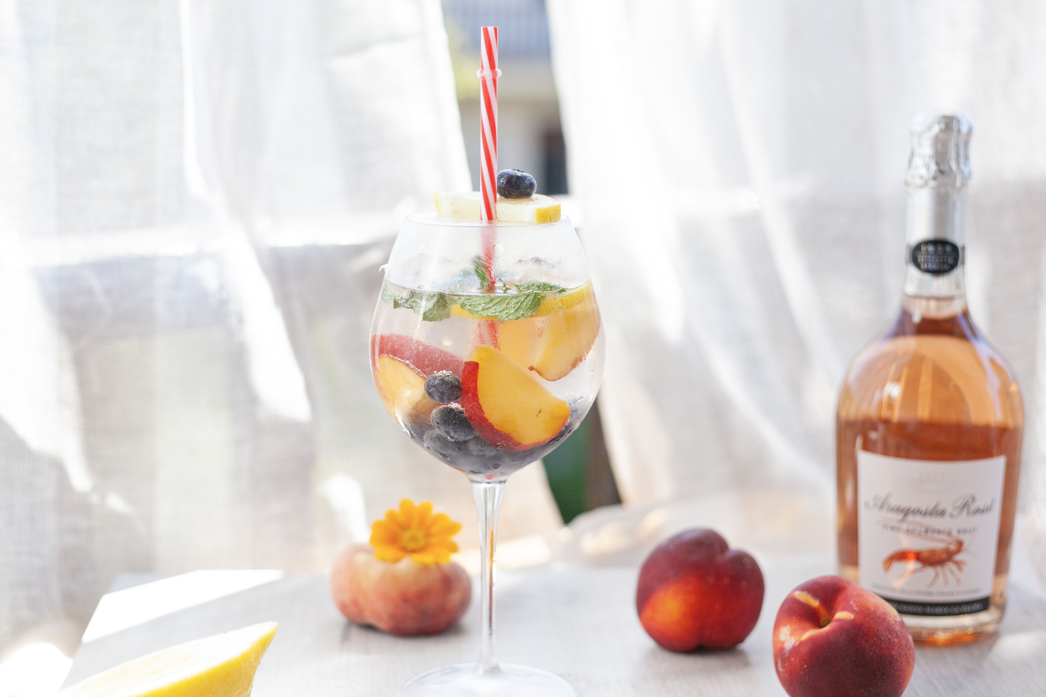 Do větší sklenice na víno dáme ovoce, mátu a mražené borůvky a led. Celé zalijeme šumivým vínem a doředíme perlivou vodou. Skleničku ze vně otřeme, aby nebyla mokrá a překryjte fólií. Zbytečné přesahy fólie opatrně utrhneme a upravíme. Fólii propíchneme brčkem. Fólie krásně pruží a je pevná. Můžeme na ni položit letní kvítky, ovoce a další. Ovocný vinný střik můžeme připravit v různých variantách: virgin bez alkoholu nebo můžeme přidat trochu aperolu pro letní oranžovou barvu.